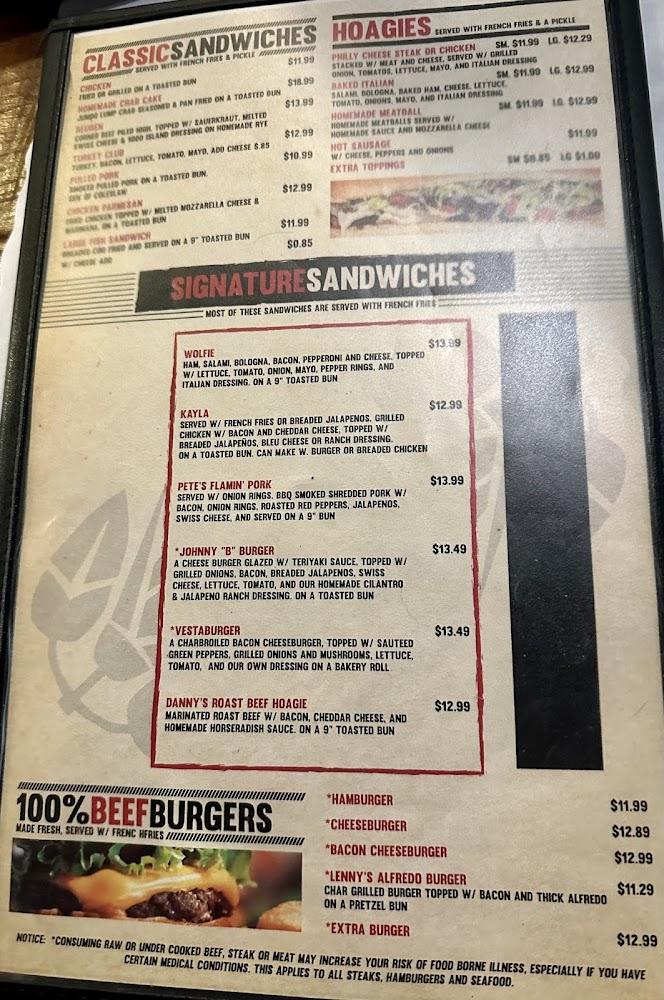 Sunday steak night is a highlight, showcasing expertly prepared cuts. Regular patrons love exploring the rotating specials, keeping meals exciting. Fried favorites like wings and loaded potatoes round out the delightfully varied offerings.